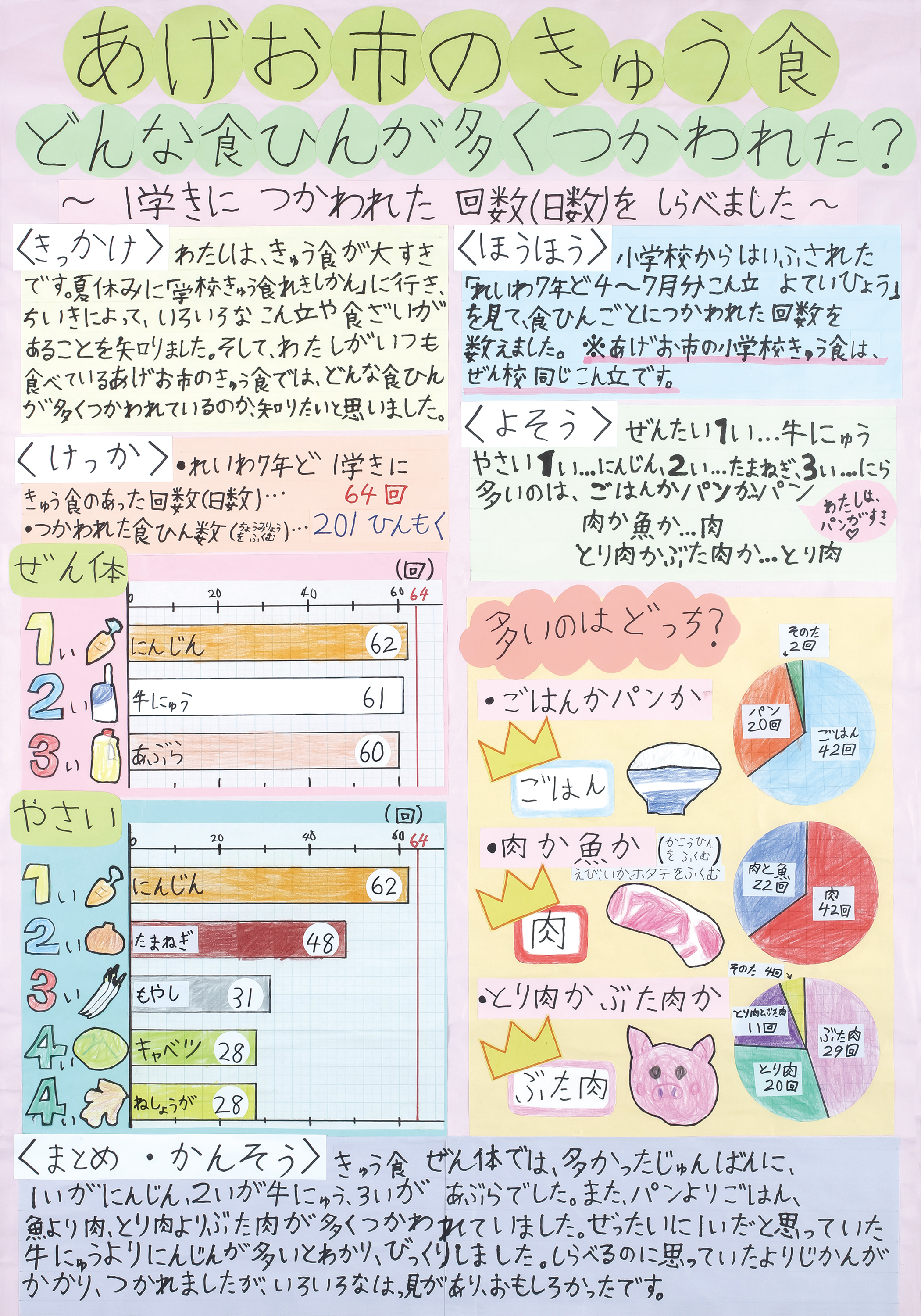 あげお市のきゅう食 どんな食ひんが多くつかわれた? | 上尾市立原市小学校 | 2年 市瀬 琴葉 |