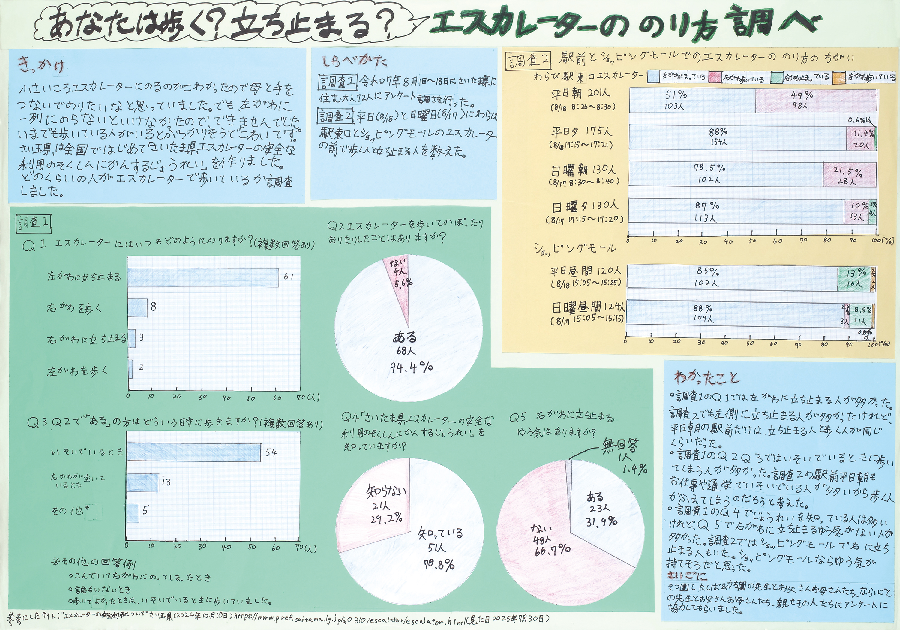 あなたは歩く?立ち止まる?エスカレーターののり方調べ | 川口市立芝南小学校 | 3年 石川 絢花 |