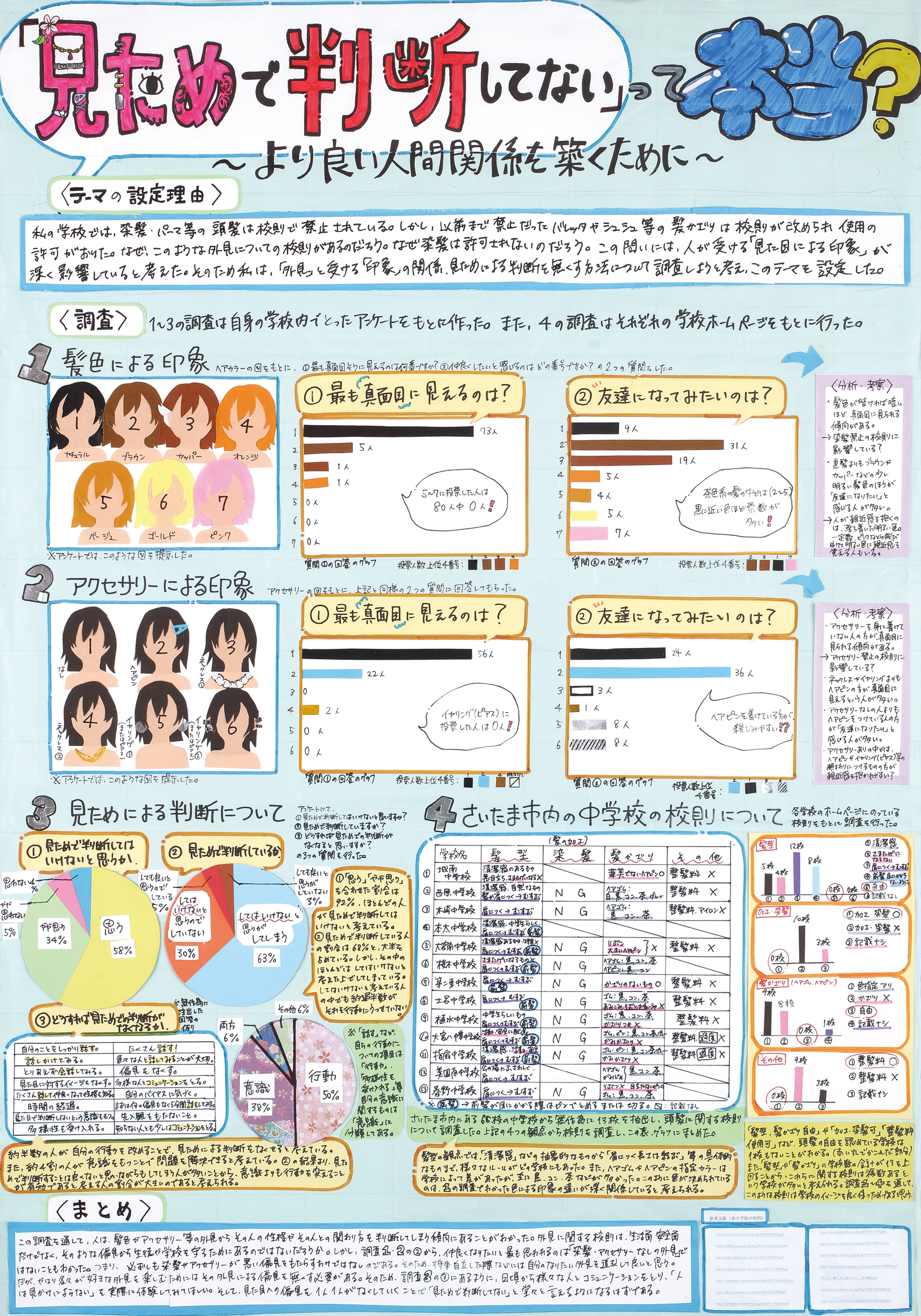 「見た目で判断してない」って本当?~より良い人間関係を築くために~ | さいたま市立大宮国際中等教育学校 | 3年 田口 花 |