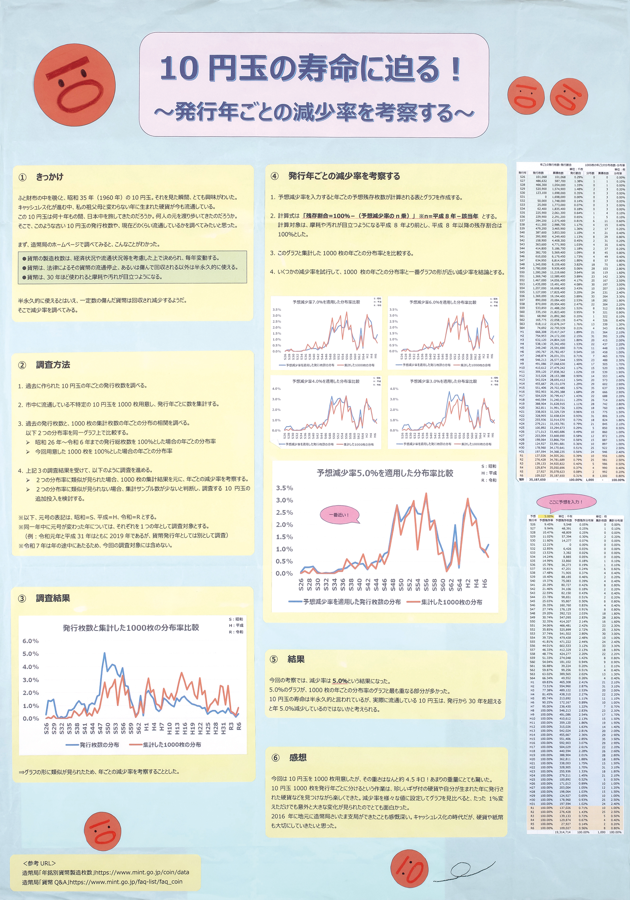 10円玉の寿命に迫る!~発行年ごとの減少率を考察する~ | 渋谷教育学園渋谷中学校 | 2年 清水 綾珠 |