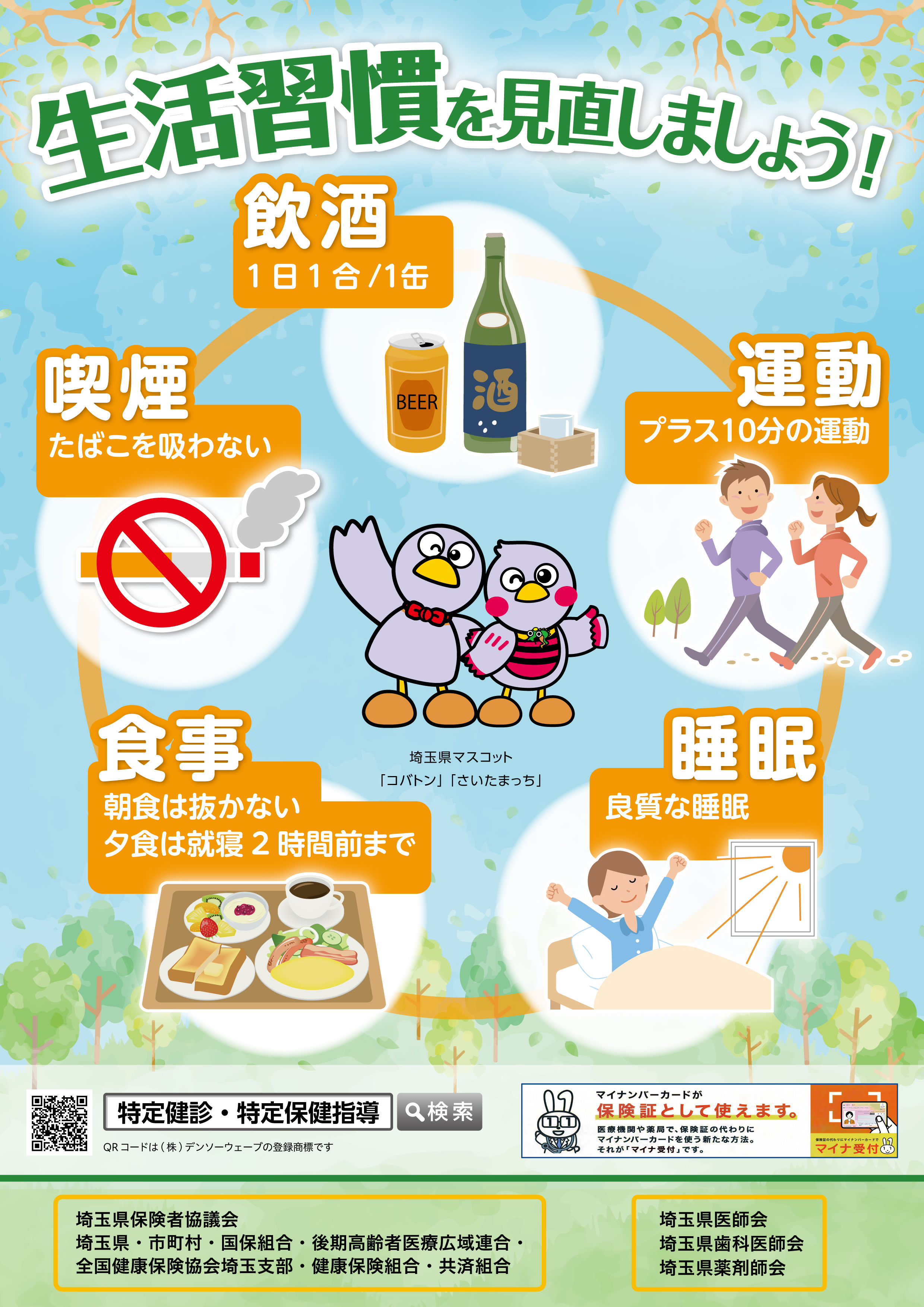令和8年度は生活習慣の見直し促進のために広報デザインのデータを作成しました。県内各保険者におかれましては、ポスターやSNS、デジタルサイネージ等での広報に是非御活用いただきますようお願いいたします。