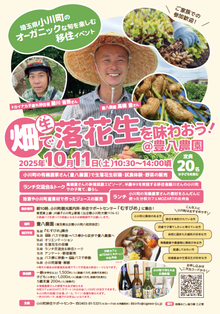 埼玉県小川町のオーガニックな旬を楽しむ移住イベント~畑で生落花生を味わおう!@豊八農園