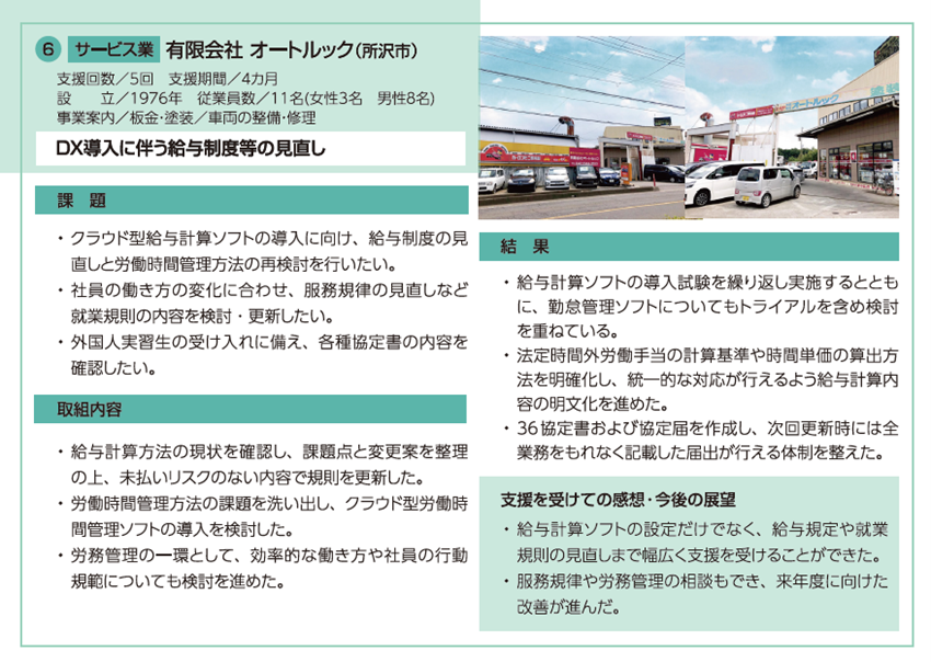 | 有限会社オートルック | サービス業 | DX導入に伴う給与制度等の見直し |