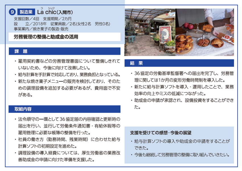 | La chic(ラ シック) | 製造業 | 労務管理の整備と助成金の活用 |